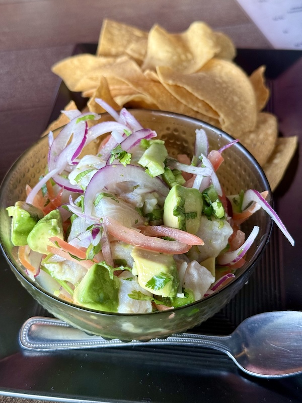Ceviche Veracruzano is a regional Mexican take on ceviche inspired by the coastal city of Veracruz, which sits along the Gulf of Mexico. On paper, it reads beautifully: local wild snapper cured in leche de tigre, layered with cilantro, avocado, tomato, and shaved red onion. This Ceviche Veracruzano at El Rancho Grande has good intentions but a bit of an awkward execution.