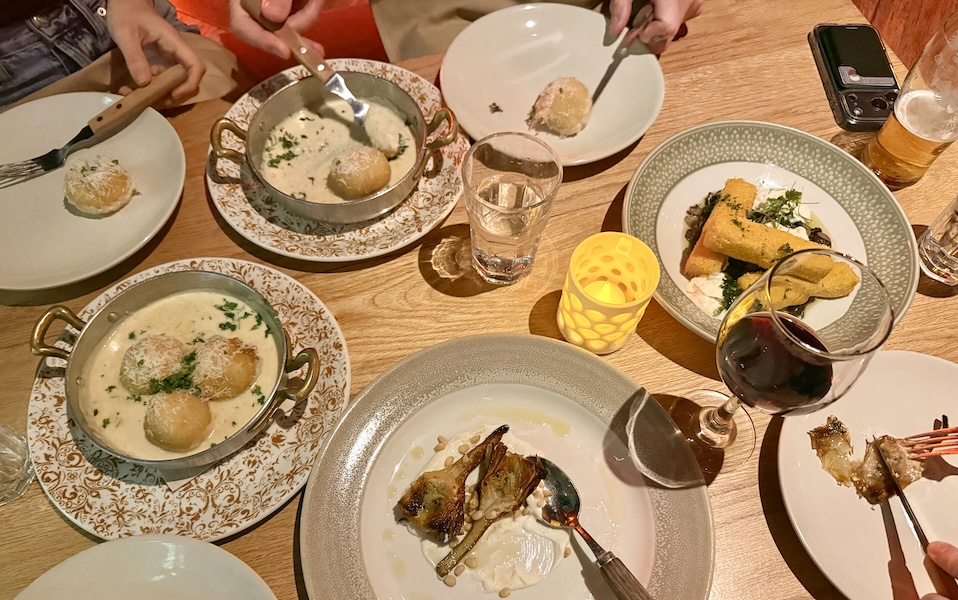 But the real reason you order it again is the cheese fondata. It’s warm, glossy, and ridiculously comforting, like a grown-up queso that somehow still feels Italian. Coat each bite in it. And when you catch a little parsley in the mix, it adds just enough freshness to keep the whole thing balanced. As I mentioned, save it for any other place you can find for it with the rest of your dishes.