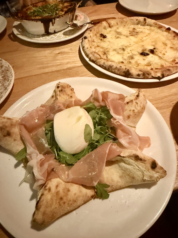 The good: that ricotta stuffed crust! You get the wood-fired base, blistered and snappy at the edges, then that soft, mild ricotta tucked into the points like a built-in reward. (PS, this is perfect for dipping in that leftover fondata if you’re lucky enough to be able to handle so much cheese).